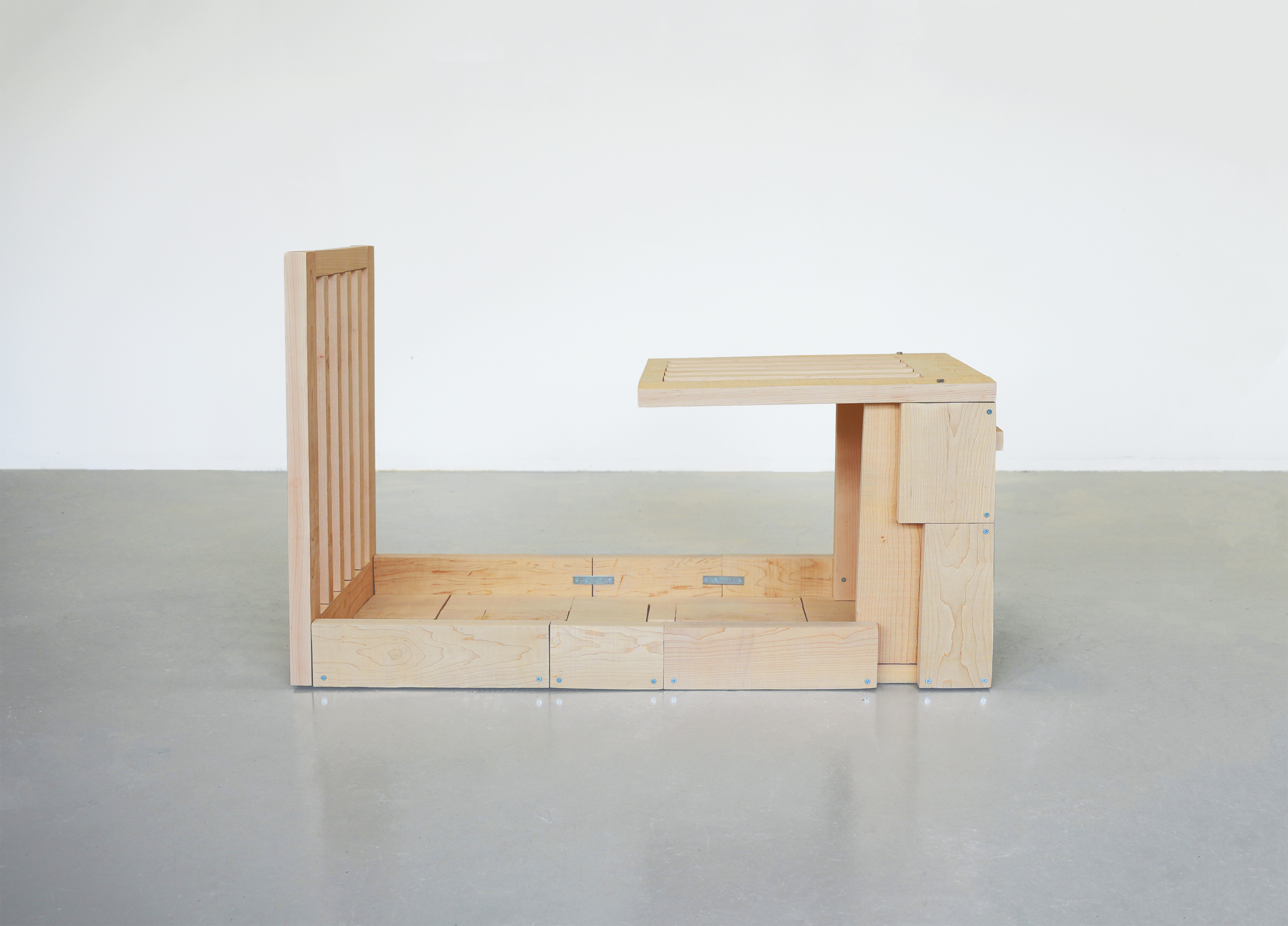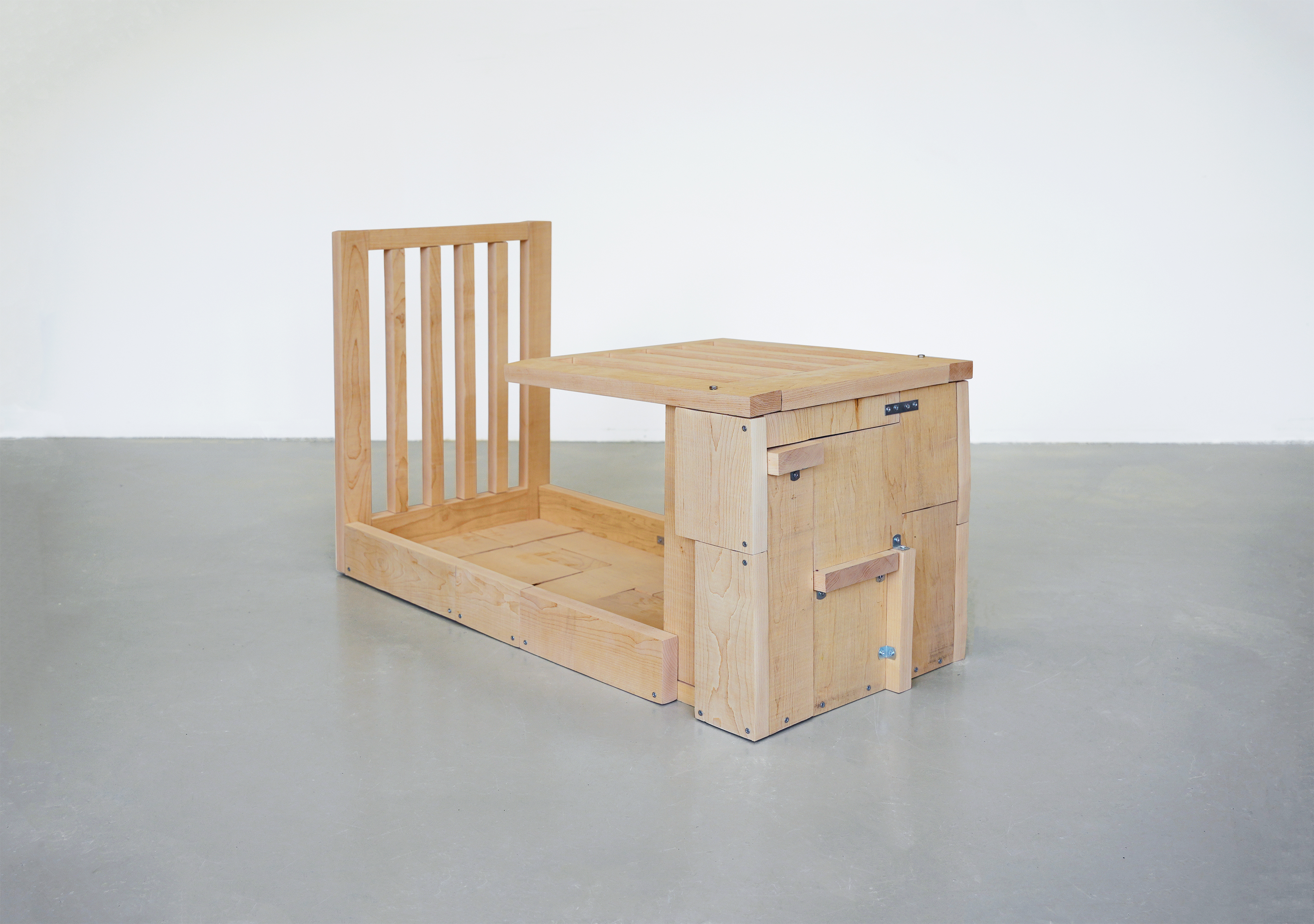 The making of Bed I returns to the state from a few years ago associated with the making of Bookcase (Waiting), revisiting the way of gradually constructing the work piece by piece using cut wooden blocks. The ‘body’ became a theme of the work once again, unwittingly; or perhaps, it has never left my art practice. Merleau-Ponty said, our bodies and the world are made of the same stuff.